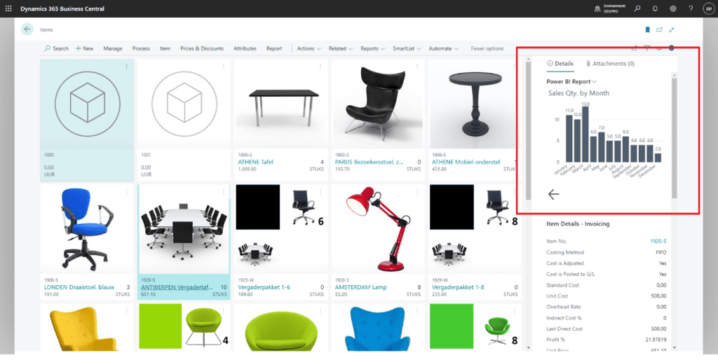 Paul heeft vervolgens in een live demo laten zien hoe je Power BI kunt embedden in Business Central, zowel in het role center als in de factbox van list pages. Paul had visualisaties gemaakt om het verloop van de artikelverkopen te kunnen visualiseren in de factbox. Hier hebben we na de sessie ook veel positieve reacties en vragen over gehad.