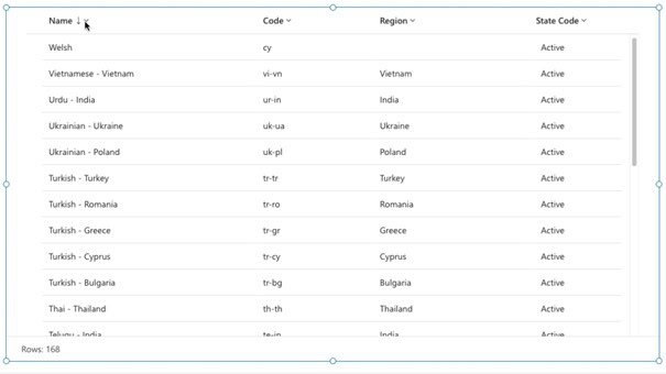 Een van de meest indrukwekkende nieuwe controls is de table control. Deze control geeft een volledig responsieve weergave terug van tabeldata die vergelijkbaar is met een view uit een Model Driven app. De table control beschikt over de mogelijkheid om de volgorde van kolommen te wijzigen en gebruikers kunnen de data sorteren zoals ze dit gewend zijn in Model Driven Apps. Dit alles voor elkaar krijgen met een klassieke gallery control is een lastige en tijdrovende klus dus dat maakt de nieuwe table control een hele mooie toevoeging.
